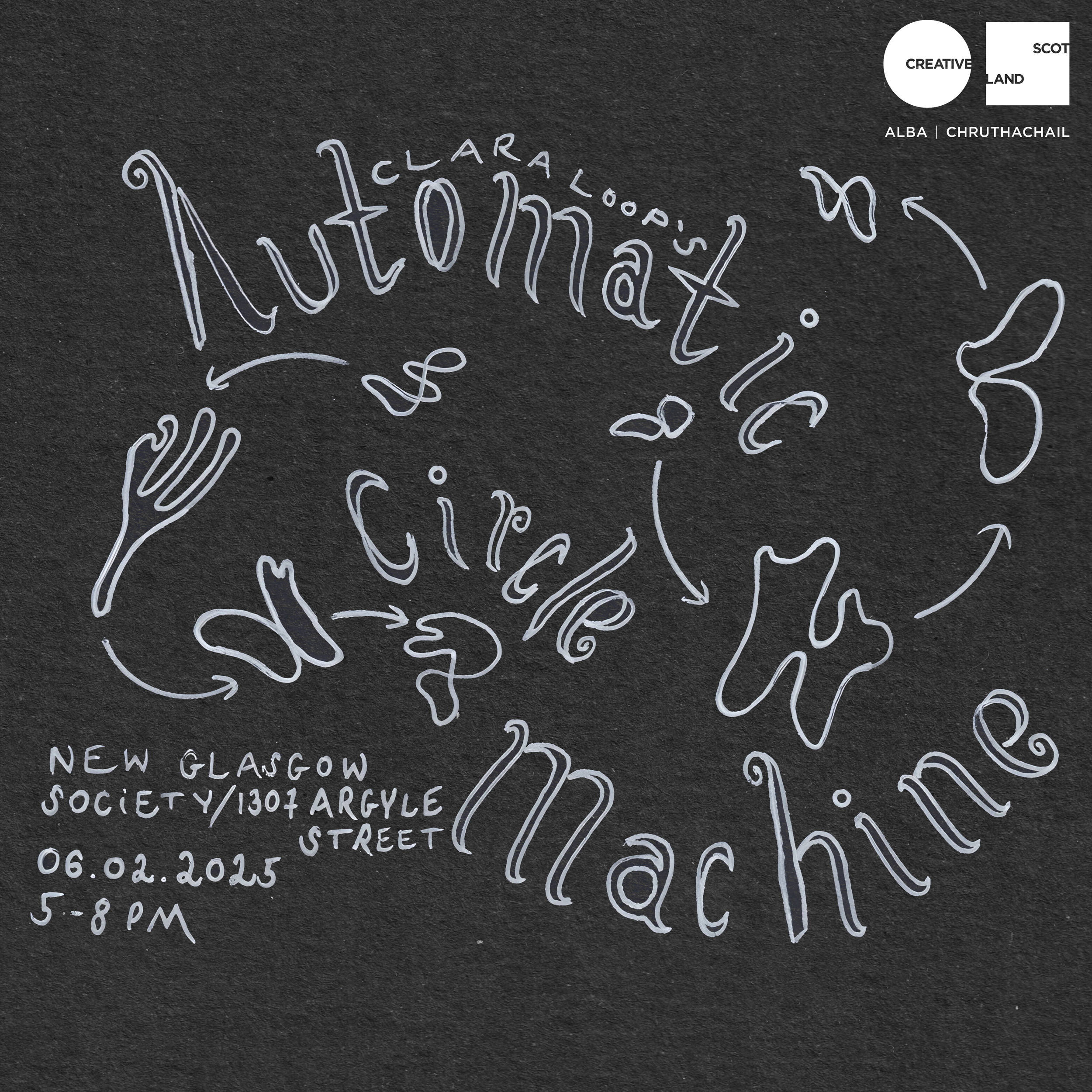 Automatic Circle Machine is a sound installation consisting of multiple tape loops and a hand drawn animation. It was presented at New Glasgow Society in Finnieston, Glasgow, UK, supported by Creative Scotland’s Open Fund.